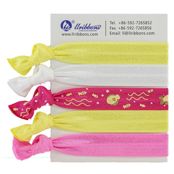 Color: yello, pink, white plain elastic bands and foil gold fish pattern combining
